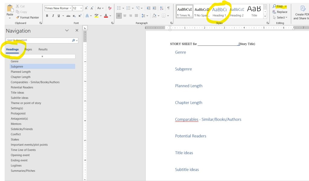 Sometimes the simplest process can be the most efficient way to do something. A Story Sheet is little more than a word document, but it can truly be a timesaver when you are writing. Give it a try!